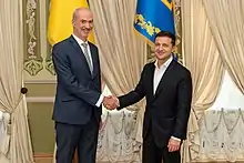 ![]() de Poncins with the President of Ukraine, Volodymyr Zelenskyy | |