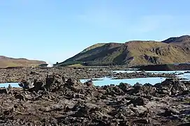It is located within the area of the Reykjanes volcanic system and enclosed by Holocene lava fields. A visible tectonic graben[4] runs over the top of the mountain[5] forming a small canyon, up to 80 m deep.[6] The mountain is a symbol of Reykjanes' geology.[7]