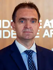 Ľudovít Ódor (Hungarian: Ódor Lajos; born 2 July 1976) is a Slovak economist and politician who served as Prime Minister of Slovakia from May to October 2023, heading a technocratic cabinet. From July to October 2023, he also served as Minister of the Interior. Prior to his appointment as prime minister, Ódor served as Deputy Governor of the National Bank of Slovakia, from 2018 to 2023.[1] He was the first Slovak premier from the ethnic Hungarian minority in Slovakia.[2]