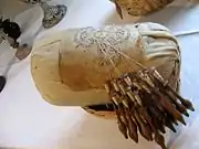 The parish church in Železniki is dedicated to Saint Anthony and stands in Trnje on the left bank of the Selca Sora River. It was built between 1872 and 1874 in the Renaissance Revival style at the site of an earlier church that burned down in 1822. The church was built by Franc Faleschini based on a design by Štefan Šubic. The bell tower was damaged by fire in 1944, but was repaired in 1997.[4] The church contains works by Janez Wolf, Janez Gosar Sr., and Ludovik Grilc.[5] Saint Francis Xavier Church stands on the opposite side of the river in Log. It was built in 1707 in the Baroque style, with a barrel-vaulted chancel and nave. The chancel vault and arch were painted by Štefan Šubic in 1857. The cemetery around the church was established in the early 19th century.[6]