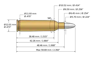 | Bullet diameter | .224 in (5.7 mm) | |||||||||||||||||||||||