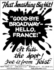 Promotional ad for "Good-bye Broadway—Hello, France!" published in the New York Clipper.[1]