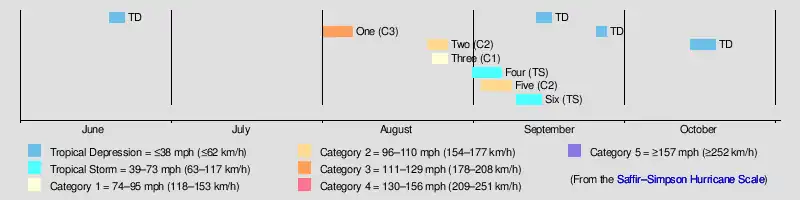 The 1918 Atlantic hurricane season was inactive, with a total of six tropical storms developing, four of which intensified into hurricanes. Two of the season's hurricanes made Landfall in the United States, and one became a major hurricane, which is Category 3 or higher on the modern-day Saffir–Simpson scale.[1] Additionally, there were four suspected tropical depressions, including one that began the season on June 19 and one that ended the season when it dissipated on October 19. The early 20th century lacked modern forecasting and documentation, and thus, the hurricane database from these years may be incomplete. Four previously unknown tropical cyclones were identified using records, including historical weather maps and ship reports, while information on the known storms was amended.