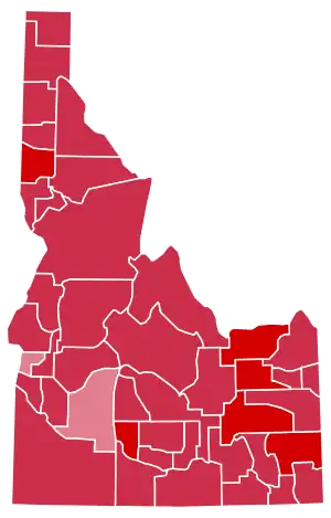 | Twin Falls | 5,894 | 67.16% | 2,882 | 32.84% | 0 | 0.00% | 0 | 0.00% | 3,012 | 34.32% | 8,776 |