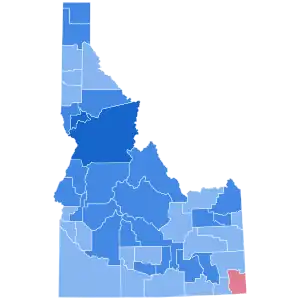 | Minidoka | 2,164 | 64.27% | 1,130 | 33.56% | 65 | 1.93% | 8 | 0.24% | 0 | 0.00% | 1,034 | 30.71% | 3,367 |
