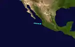 After no tropical cyclone activity in July and August, the third tropical storm formed offshore of southwestern Mexico on September 3. Like the previous two tropical cyclone, this storm had a peak of 50 mph (80 km/h), and did not intensify further. Tropical Storm Three headed northwestward, and began paralleling the coast of Baja California. On September 8, Tropical Storm Three turned abruptly south-southwestward, and dissipated by the next day.[5] The outer rainbands of this system were expected to bring squally weather over the Baja California Peninsula;[6] instead, this storm turned away without causing any impact.[7]