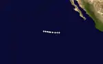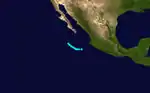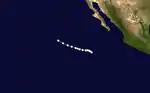 A hurricane developed on September 15 southwest of Baja California and dissipated seven days later.[1] Moisture from Five produced 2 in (51 mm) of rainfall in the deserts and mountains of central and southern California.[2]