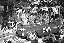 The 1954 Mille Miglia (officially XXI Mille Miglia [1]), was a motor race open to Sports Cars, GT cars and Touring Cars. It was the 21st Mille Miglia and the third race of the 1954 World Sportscar Championship. The race was held on the public roads of Italy on 2 May 1954 using a route based on a round trip between Brescia and Rome, with the start and finish in Brescia.[2] It was won by Alberto Ascari driving a Lancia D24.
