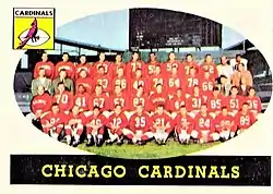 The 1958 Chicago Cardinals season was the team's 39th season the team was in the National Football League. The Cardinals failed to improve on their previous year's 3–9 record, winning only two games during the franchise's penultimate season in the Windy City.[1] They failed to qualify for the playoffs (NFL title game) for the tenth consecutive season.