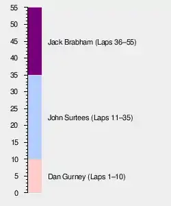 | 6 | 16 | Lotus-Climax | 48 | + 7 Laps | 7 | 1 | |