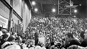 By January 1960, the Kennedy campaign became aware of "non-partisan citizen committees" operating in support of Kennedy's candidacy in the state, without any direct connection to his official campaign.[9] However, the state as a whole was still cold on Kennedy.[9] Its liberals were fervent supporters of Adlai Stevenson II, and therefore hoped to see Stevenson nominated for a third time.[9] Philadelphia's Democratic organization, which had a significant sway upon the state's Democratic establishment, was led by William J. Green Jr., who favored the prospective candidacy of Stuart Symington.[9] As the year progressed, Green and other leaders were persuaded by polls to switch their allegiance to Kennedy.[9] Liberal senator Joseph S. Clark Jr. even made it known that Kennedy ranked at least second (behind Stevenson) in his own preference.[9]