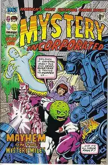 When an asteroid comes close to Earth, the government sent up physicist Craig Crandall, astronaut Biff Baker and students Tommy Baker and Jeannie Morrow to investigate via rocket. They discover alien statues which transform them into superpowered beings. They form a crimefighting team called Mystery Incorporated and establish an underground base called the Mystery Mile, fighting villains such as Amazonia, Doc Apocalypse and King Zero, becoming popular celebrities for their heroism.[22]
