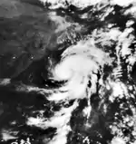 A low-pressure area that was centred over West Bengal on August 31 organized into a depression on September 2, when it was 50 km (31 mi) to the east of Midnapore. It intensified as it moved to the west, becoming a deep depression on the next day, about 50 km (31 mi) east of Ranchi. The system continued to move west across India, before weakening into a depression on September 7, near Ahmedabad, Gujarat. The depression then turned northward and entered southwest Rajasthan.[2] On September 8, the system turned to the southwest and emerged into the Arabian Sea on the following evening. Over open water, it intensified again, becoming a cyclonic storm by the evening of September 10. The cyclone developed a short-lived eye on September 11, as it drifted slowly to the west, before degenerating into a broad area of low pressure as it neared the Oman coast, on September 14.[2] This system brought widespread rains to a wide swathe of India during its existence. Some heavy rains in West Bengal flooded vast areas of many districts and resulted in some fatalities, whilst in parts of neighbouring Orissa the floodwaters damaged fields. 390 mm (15 in) of rain fell on Bardhaman over two days as the depression passed overhead. Several thousand people were made homeless in West Bengal. Both the Narmada and Tapti Rivers inundated parts of Madhya Pradesh and Gujarat. The floods in Gujarat took many lives and caused severe damage to crops and other properties. Between 300 and 400 people were washed away in two villages in Bharuch district.[2] 260 mm (10 in) of rain fell on Surat on July 7 and a further 80 mm (3.1 in) on Kutch District as the cyclone moved out to sea.[2]