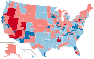 The 1982 United States House of Representatives elections was an election for the United States House of Representatives held on November 2, 1982, to elect members to serve in the 98th United States Congress. They occurred in the middle of President Ronald Reagan's first term, whose popularity was sinking due to economic conditions under the 1982 recession. The President's Republican Party lost seats in the House, which could be viewed as a response to the President's approval at the time. Unlike most midterm election cycles, the number of seats lost—26 seats to the Democratic Party—was a comparatively large swap. It included most of the seats that had been gained the previous election, cementing the Democratic majority.[1] Coincidentally, the number of seats the Democrats picked up (26), was the exact amount the Republicans would have needed to win the House majority. It was the first election held after the 1980 United States redistricting cycle.