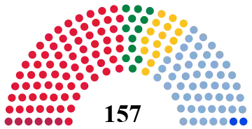 Last election 37.2%, 66 seats 35.3%, 53 seats 12.5%, 15 seats