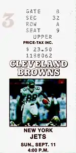 A ticket for a September 1988 game between the Jets and the Cleveland Browns.