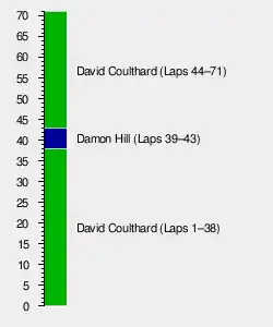 The 1995 Portuguese Grand Prix (formally the XXIV Grande Prémio de Portugal) was a Formula One motor race held on 24 September 1995 at the Autódromo do Estoril, Estoril, Portugal. It was the thirteenth race of the 1995 Formula One season.[1] The 71-lap race was the first Formula One win for David Coulthard of the Williams team after starting from pole position Coulthard became the first Scottish driver to win a Grand Prix since Jackie Stewart won the 1973 German Grand Prix 22 years previously. Michael Schumacher was second in a Benetton, with Damon Hill third in the latter Williams car.[2] After several controversial incidents previously involving Schumacher and Hill in the 1995 season, including collisions at Silverstone, Spa and Monza (the latter two of which saw confrontations between the two drivers respectively on the podium and at track-side), Schumacher and Hill shook hands with each other at the podium presentation following this race.