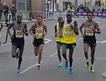 Zersenay Tadese in the lead pack of the 2013 Prague Half Marathon