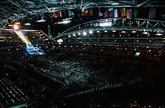 ![]() Athletes leaving the stadium at the end of the ceremony | |