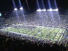Fans storming the field following the 48–29 victory.