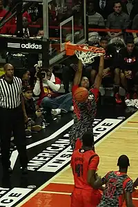 Julius Randle, originally from Plano, Texas, was the highest rated signee in the 2013 class. He committed to Kentucky on March 18, one day after Kentucky lost to Robert Morris in the opening round of the NIT.[10] He chose Kentucky over Kansas and Texas. He was the nation's consensus top power forward, was ranked the No. 2 overall player by Rivals, the No. 3 overall player by ESPN and the No. 5 overall player by Scout. He helped lead Prestonwood Christian to three state titles including one in his freshman year and back-to-back titles in junior and senior seasons. He was a McDonald's All-America and Jordan Brand Classic game selection. He was the co-MVP in the Jordan Brand Classic.[11]
