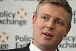 Seven people registered to be the candidate for the Conservative Party.[25] Of these, three were eliminated: Philippa Roe, leader of Westminster City Council; Ivan Massow, financial services entrepreneur, gay rights campaigner, and media personality; and Sol Campbell, former Arsenal and England football player.[26] Four nominees went into a primary, with registration open anyone on the London electoral roll.[27] The candidate was announced on 2 October 2015 to be Zac Goldsmith, journalist, author and MP for Richmond Park.[28][29] The defeated nominees were: Andrew Boff, leader of the Conservative Party in the London Assembly;[25] Stephen Greenhalgh, businessman and Deputy Mayor for Policing and Crime;[25] and Syed Kamall, academic, Chairman of the European Conservatives and Reformists, and an MEP for London.[25]