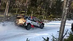 The 2020 FIA World Rally Championship started in Monaco. The sport saw a series of crew changes in the off-season, which included reigning world champions Ott Tänak and Martin Järveoja moving to Hyundai.[4] Tänak and Järveoja's title defence started poorly when they suffered a high-speed crash on the fourth stage of the rally, which saw their Hyundai i20 flying off a 40 m (131.2 ft) high cliff at 180 km/h (111.8 mph), rolling end-over-end through a series of trees and landing on the road below; both Tänak and Järveoja walked away uninjured.[89] Following the crash, Hyundai's hopes rode on the shoulders of Thierry Neuville and Nicolas Gilsoul. Despite holding the lead on Thursday night, Friday saw the Toyota crews of Sébastien Ogier and Julien Ingrassia and their teammates Elfyn Evans and Scott Martin take the lead.[90][91] The lead would swing backwards and forwards throughout the rally until Neuville and Gilsoul won seven out of the eight final stages—including winning the Power Stage—to record their first win in Monte Carlo.[92]