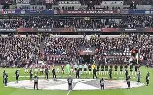 West Ham line up at the London Stadium before their Europa League semi-final game against Eintracht Frankfurt