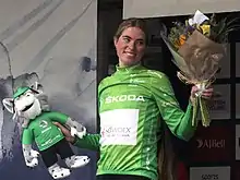 - ↑ On stage 2, Chloe Hosking, who was second in the points classification, wore the cyan jersey, because first-placed Marta Bastianelli wore the blue jersey as the leader of the general classification.