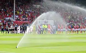 On 21 May, West Ham played Leeds United in the Premier League in their last home game of the season. Leeds were managed by former West Ham manager, Sam Allardyce. Leeds scored first, in the 17th minute with a volley from Rodrigo. Declan Rice equalised in the 32nd minute. West Ham added two more in the second-half through Jarrod Bowen and Manuel Lanzini as the score finished 3–1.[144][145]