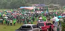 For almost all major parties, most respondents said they had made their decision based on the party's programme or vision. In the case of KHUNTO, however, 30% of their supporters said they had chosen them because of family ties to their party leadership. When asked who they would like to see as prime minister, Gusmão could attribute his support to his personal background and work, while for the other politicians the reason is the party behind them. The most important issues for respondents were infrastructure development (43%), job creation (22.75%) and education (14%).[43] In mid-April, Abel de Conceição, the administrator of the municipality of Aileu, had police officers break up a public debate on "Building a new just and solidary society" at the Uma Dame Peace Centre in Aileu. The event, where representatives of different political forces were to discuss, had been organised by the Youth Movement of the Municipality of Aileu (MJMA). Conceição justified the dissolution with the given period of the election campaign and that debates between the parties could only be organised by the electoral bodies. President Ramos-Horta criticised the action and stressed the constitutional right to organise events and express their views on political issues. When asked by Virgílio da Silva Guterres, the ombudsman of the Provedoria dos Direitos Humanos e Justiça (PDHJ), Conceição expressed regret that he had not wanted to restrict citizens' rights, but only to implement the guidelines of the CNE and STAE. Guterres stressed that this was not the responsibility of the municipal administration, but of the CNE, and Miguel Pereira de Carvalho, Conceição's predecessor as Minister of State Administration, also stated that the municipal administrator had neither the power to decide on the authorisation of such events, nor could he give instructions to the police.[44]