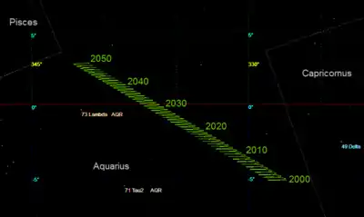 Apparent motion of Gonggong through the constellation Aquarius (years 2000 to 2050)