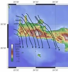 Uplift contours (metres) associated with the 365 earthquake in western Crete after Flemming 1978