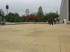 Michelson died in Pasadena, California, at the age of 78.[22] The University of Chicago Residence Halls remembered Michelson and his achievements by dedicating 'Michelson House' in his honor. Case Western Reserve has dedicated a Michelson House to him, and Michelson Hall (an academic building of science classrooms, laboratories and offices) at the United States Naval Academy also bears his name. Michelson Laboratory at Naval Air Weapons Station China Lake in Ridgecrest, California, is named for him. There is a display in the publicly accessible area of the Lab which includes facsimiles of Michelson's Nobel Prize medal, the prize document, and examples of his diffraction gratings. In 2017, a newly renovated physics research center at the University of Chicago was renamed in honor of Michelson as well.[23]
