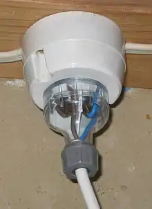 If required, such dual socket-outlets can be obtained (at additional cost) using insulation displacement as a means of connecting to the supply conductors, as can be seen in the illustration - below right.[7][8] The benefits claimed for their use in these applications include up to 50% faster installation, due to the reduction in the stripping, twisting and screwing down processes.