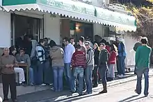 Abu Hassan's original restaurant on Dolphin Street is small, overcrowded and almost uncluttered. It is open from eight in the morning and closes when there is no more food, usually in the early afternoon.[2] Due to the long line that is steeped in the entrance, hummus is eaten sitting together with other diners around the same table, as is customary in many working restaurants. Restaurant service is fast, efficient and sometimes even aggressive. The reservation and serving are very quick, and the waiters often urge the diners who have finished eating to make room for those waiting in line.