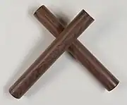 Claves (also called palitos) consist of two short, round pieces of wood which are struck together to produce sound.[18] Modern day claves originated in Cuba[18] and are reminiscent of early percussive instruments present in ancient, indigenous civilisations all around the world, including Africa and South America.[24][18] Claves are used to maintain a rhythm known as the ‘clave’, or the key.[25]