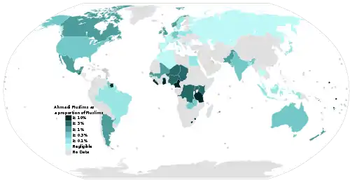- ↑ There is also an upper estimate of 200,000 Ahmadi Muslims in Bangladesh.