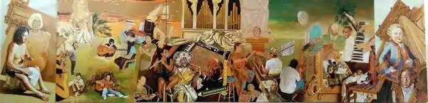 Sounds A mural in five panels by Alberto Gómez Gómez. 2005. acrylic on board. 180" X 48"