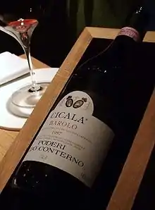Conterno and his older brother Giovanni assumed responsibility of the Giacomo Conterno estate in 1961, but the brothers eventually parted ways over conflicting philosophies on the production of Barolo wine, and in 1969 Aldo Conterno established Poderi Aldo Conterno.[1][8][9][10][11] While Aldo Conterno had been inspired by the modernist innovations of Angelo Gaja of Barbaresco, and differs in style and method from the strict traditional methods of his brother Giovanni, Aldo Conterno wines are still considered largely traditional, but for a few exceptions.[1][11][12]