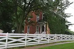 The Alexander Organ House is a historic residence located in Maquoketa, Iowa, United States. It is one of several Victorian houses in Maquoketa that are noteworthy for their quoined corners, a rare architectural feature in Iowa.[2] Built around 1896, the 21⁄2-story brick house follows an L-shaped plan. It features a 11⁄2-story wing in the back, quoining with cream-colored brick, limestone foundation, gable roof, a polygonal bay window on the east elevation, and a bracketed canopied porch with cresting on the main facade. Organ worked as a clothing merchant. This house was one of many houses built during Maquoketa's economic expansion in the late 19th century. It was listed on the National Register of Historic Places in 1991.[1]