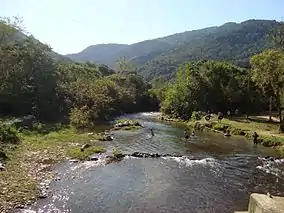 The Alto Ribeira Tourist State Park is divided between the municipalities of Apiaí and Iporanga in the state of São Paulo, lying 320 kilometres (200 mi) away from the city of São Paulo. It has over 350 caves, many waterfalls, trails and archaeological and paleontological sites. There are traditional and quilombola communities in the park.[1] There are four visitor centers and support for enforcement activities and research in order to safeguard and protect the rich natural heritage of the upper Ribeira region, represented by the important biodiversity of the remnants of the Atlantic Forest and its paleontological, archaeological, and historical sites. It is home to one of the most important speleological provinces in Brazil with more than 300 caves registered by the SBE - Sociedade Brasileira de Espeleologia.[2]