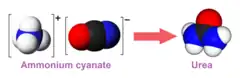 - NH+4 + OCN− → (NH2)2CO[3]
