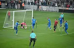 2017 European Amputee Football Championship final match Turkey /red/black) vs England (blue) at Vodafone Park in Istanbul, Turkey.