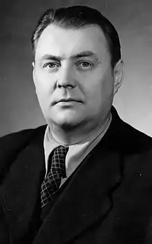 Anatoly Vladimirovich Sofronov (Russian: Анато́лий Влади́мирович Софро́нов; 19 January 1911 – 9 September 1990) was a Soviet Russian writer, poet, playwright, scriptwriter, editor (Ogonyok, 1953-1986) and literary administrator, the Union of Soviet Writers' secretary in 1948-1953. Sofronov was a Stalin Prize laureate (twice, 1948, 1949) and a recipient of the Order of the Hero of Socialist Labour (1981).[1]