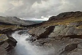 He used this money to attend the Academy of Fine Arts, Karlsruhe, where he studied under Hans Fredrik Gude from 1871 to 1876; serving as his assistant during the last three years.[2] After that, he returned to Norway and remained there until his death, although he often spent his summers working in Switzerland.