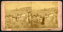 One of the 12 stereographic views of Andrew Johnson's funeral taken by L.W. Keen, photographer of Jonesboro Tenn., shows the crowd climbing the hill to Johnson's burial site (Tennessee State Library and Archives, item 42274)