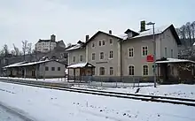 The Annaberg-Buchholz lower station is the original terminus of the Chemnitz–Annaberg line. The once extensive facilities of the station were dismantled during the reconstruction of the line and now has only two tracks. The impressive station building is now unused.