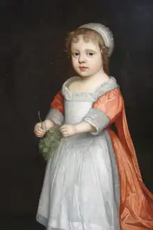 Born Lady Anne Palmer in Westminster,[1] she was the first child of Barbara Villiers, the only child of William Villiers, 2nd Viscount Grandison, and the wife of Roger Palmer, 1st Earl of Castlemaine. Anne's mother was one of the mistresses of King Charles II. According to legend, Anne was conceived on the night of Charles's coronation. This cannot be true as she was born two months earlier, but she must have been conceived about the date on which Charles assumed the throne at the Restoration. Both Villiers and the king acknowledged Anne as his daughter, and she was therefore known by the alias of Fitzroy, meaning "son of the king," but she has also been suggested as the daughter of Philip Stanhope, 2nd Earl of Chesterfield, "whom," says Lord Dartmouth, "she resembled very much both in face and person."[2]