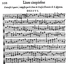 The two mentions that Mersenne made of Cousu in 1636[7] reveal that he was already working on an important musical treatise at that time. This treatise was published more than twenty years later, in 1658, by Robert III Ballard, but the author's death interrupted his publication.